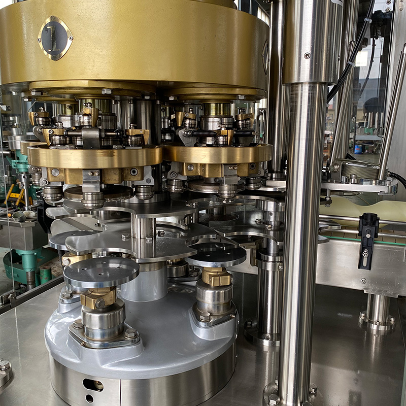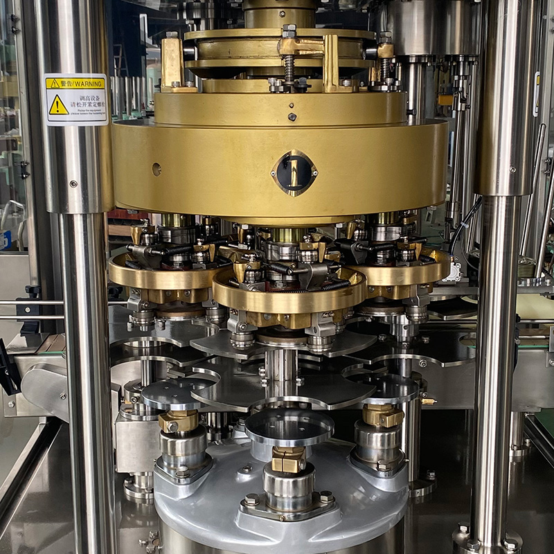 本机是一个具有四个工作头的回转式封罐机,在设计对内部的零件具有装拆方便,清洗,注油和维修操作简易等优点。机器运转平衡,能迅速使罐头的震动减少到最低限度,不存在汁液甩出的情况。两个封口滚轮相对着装置,使头道和二道封口的运转平稳,当需要检查头道的封口情况时,二道封口滚轮很容易卸开,有一个机械装置使封口滚轮恢复至原来位置。